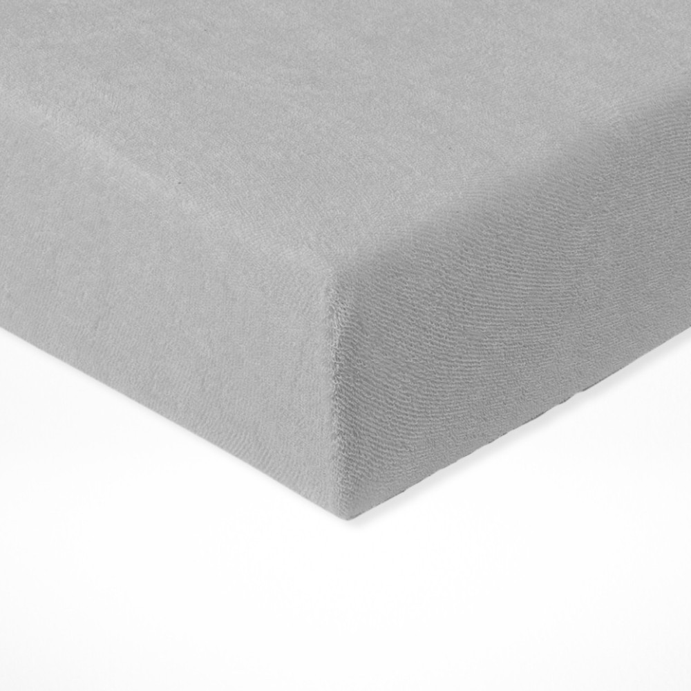 Mäkké a odolné froté plachta v svetlo sivej farbe. Perfektne drží na matrac a vďaka priedušnosti zaisťuje pohodlný spánok.