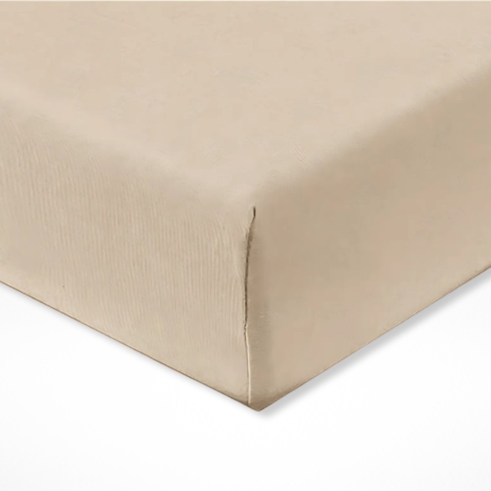 Príjemné, elastická plachta Jersey v béžovej farbe. Naše prestieradlá Jersey zaisťujú príjemný spánok vďaka mäkkému a priedušnému materiálu.