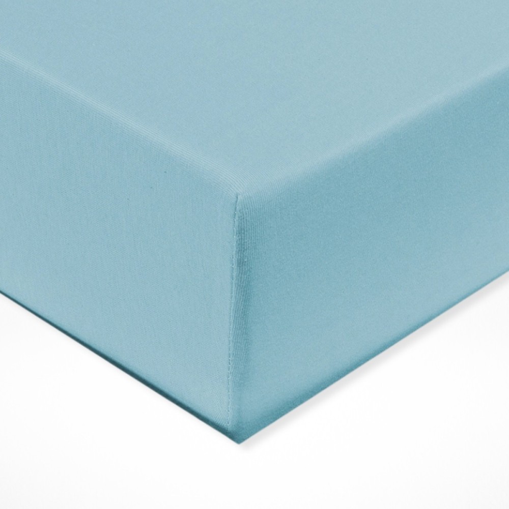 Príjemné, elastická plachta Jersey v azúrovej farbe. Naše prestieradlá Jersey zaisťujú príjemný spánok vďaka mäkkému a priedušnému materiálu.