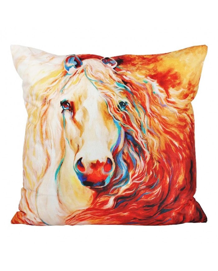 Dekoračný povlak je štýlovým prvkom, ktorý spestrí celkový vzhľad interiéru a zaslúži sa o mimoriadne útulnú atmosféru. Efektná dekoračná obliečka na vankúš Kôň zaujme nielen milovníkov týchto zvierat a je výborným doplnkom do spální, obývacích či detských izieb. Kôň je bezpochyby jedno z najkrajších zvierat a motív tohto majestátneho koňa naplní vašu izbu pozitívnou energiou. Unikátna súhra bohatých odtieňov rozžiari akúkoľvek miestnosť.
