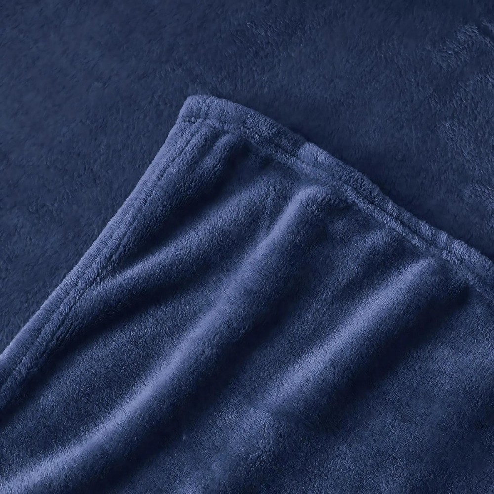 Mikroplyšová deka Värme v temne modrej farbe. Jemná, ľahká a elegantná. Ideálna ako prikrývka alebo štýlový doplnok do interiéru.