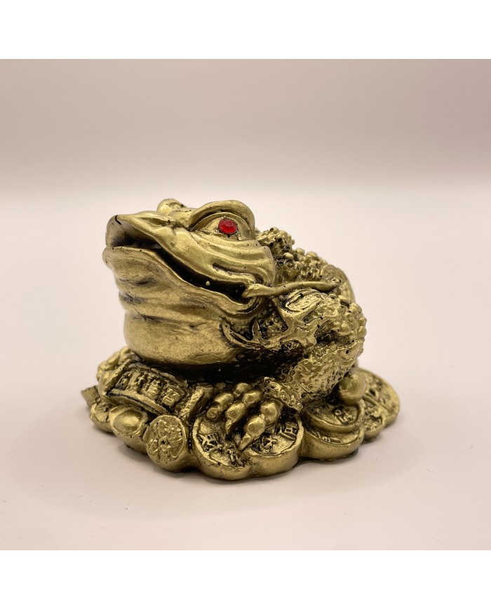 Podľa čínskeho učenia Feng Shui môžu sošky zvierat priniesť do vašej domácnosti šťastie a pozitívnu energiu. Sošku Trojnohé žaby sediace na minciach je dobré umiestniť do juhovýchodného sektora najlepšie na malý podstavec alebo stolík, aby nebola položená na zemi. Soška zo živice je prekrásnou dekoráciou do akéhokoľvek interiéru.