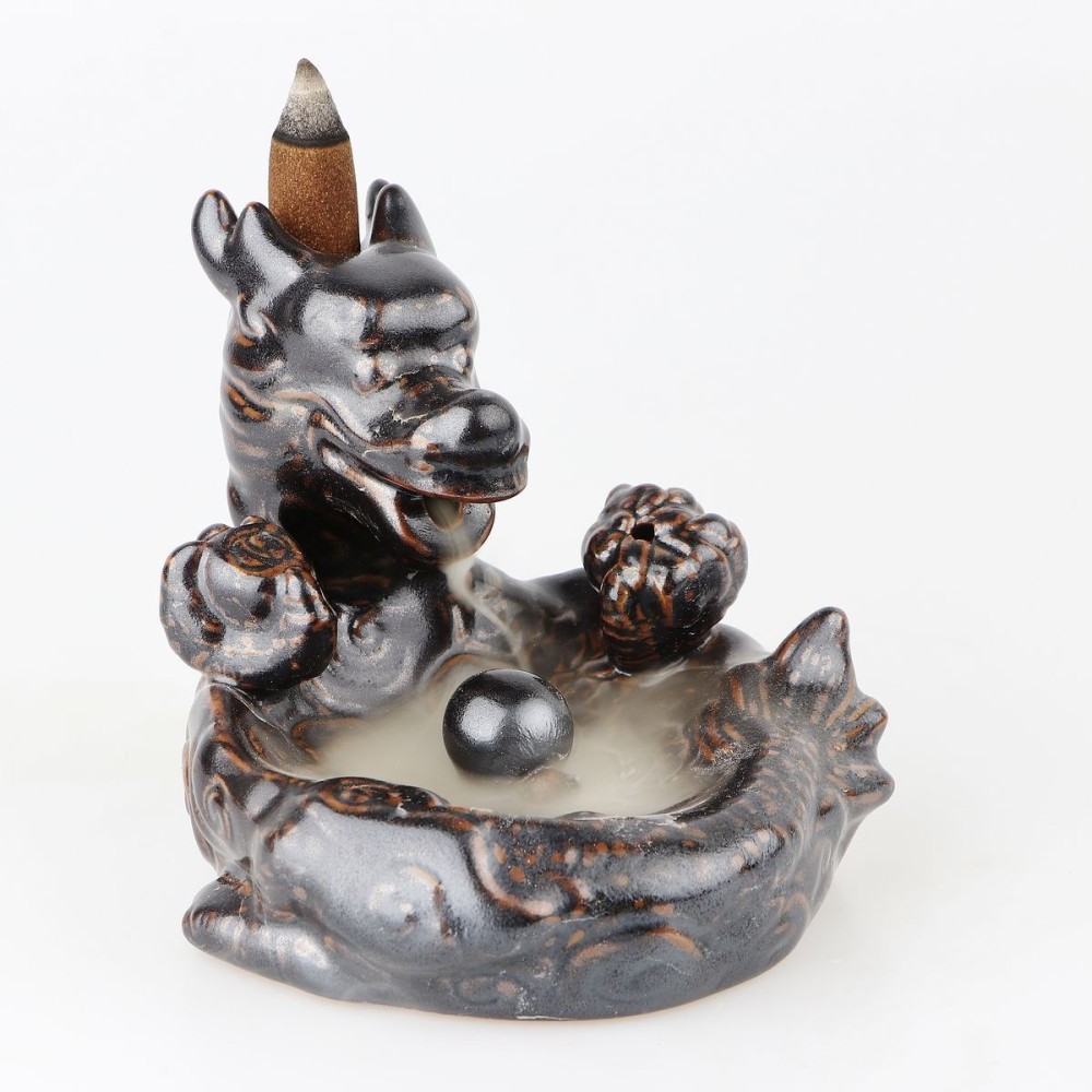 Tento krásny stojan bol špeciálne navrhnutý pre vonné kužele "Tečúci dym". Tlejúci kužeľ vytvára tečúci dym, ktorý je ťažší ako vzduch a prechádza papuľou draka priamo do stredu lotosového kvetu. Jedinečný efekt priláka oči a miestnosť zaplaví nádherná vôňa. Tento pohľad a príjemnú arómu vonného kužeľa vytvorí relaxačnú atmosféru po náročnom dni. Navyše vonné kužele prehlbujú koncentráciu počas meditácie a učenia, eliminujú stres, bolesti hlavy a môžu pôsobiť proti úzkosti.