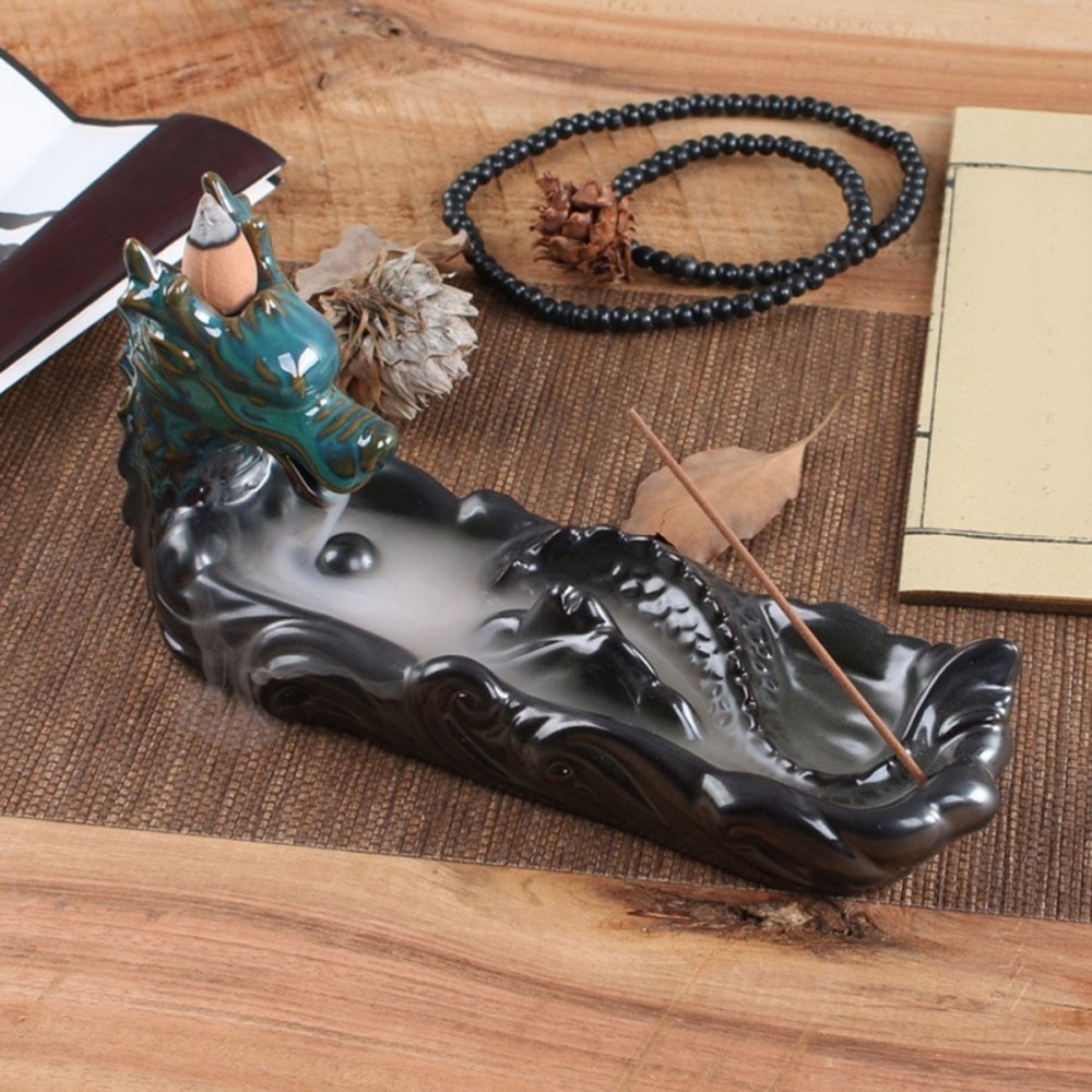 Tento krásny stojan bol špeciálne navrhnutý pre vonné kužele "Tečúci dym". Tlejúci kužeľ vytvára tečúci dym, ktorý je ťažší ako vzduch. Dym prechádza papuľou draka a rozprestiera sa po dne difuzéra. Jedinečný efekt priláka oči a miestnosť zaplaví nádherná vôňa. Tento pohľad a príjemnú arómu vonného kužeľa vytvorí relaxačnú atmosféru po náročnom dni. Navyše vonné kužele prehlbujú koncentráciu počas meditácie a učenia, eliminujú stres, bolesti hlavy a môžu pôsobiť proti úzkosti.