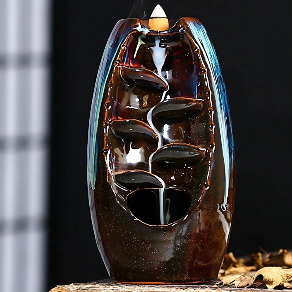 Harmonický dizajn arómy difuzéra pripomína skalu, z ktorej steká vodopád. Stojan bol špeciálne navrhnutý na vonné kužele. Omamný dym aróma kužele kaskádovito zostupuje vo vodopádovom efekte a hromadí sa na dne difuzéra.